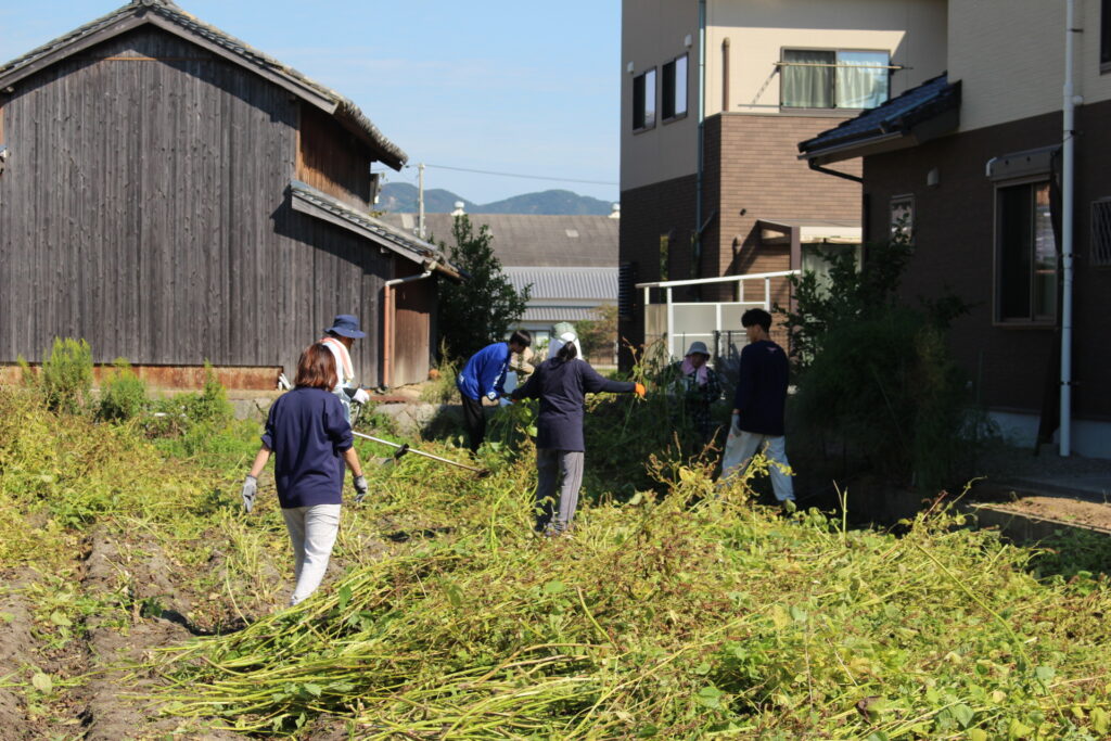 10月15日に、えごまの刈り取り(約一反)。今年は、台風の影響で9月に淡路島では強い潮風が吹き、畑の約3割がその影響で枯れてしまうという出来事があり、少し収穫量は少なめ。家族総出で刈り取りを行いました。